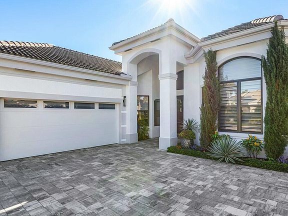 Enjoy the luxurious heated pool and a beautifully landscaped pool deck with cut stone. The covered summer kitchen also has retractable phantom screens.
