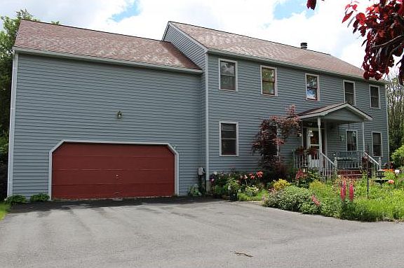 Large 1990's Colonial style home, located on West Hill and in the Town of Ithaca. All municipal services are available including natural gas, underground electric, municipal water and sewer. Lovely expanses of red oak flooring, double sided wood burning fireplace, wraparound deck, and well loved perennial gardens. Master suite w/cathedral ceilings, skylights and walk in closet. All br's on 2nd floor including large study also suitable as another br. Excellent 2 car plus garage and full basement with amazing storage. Broadband through Spectrum.