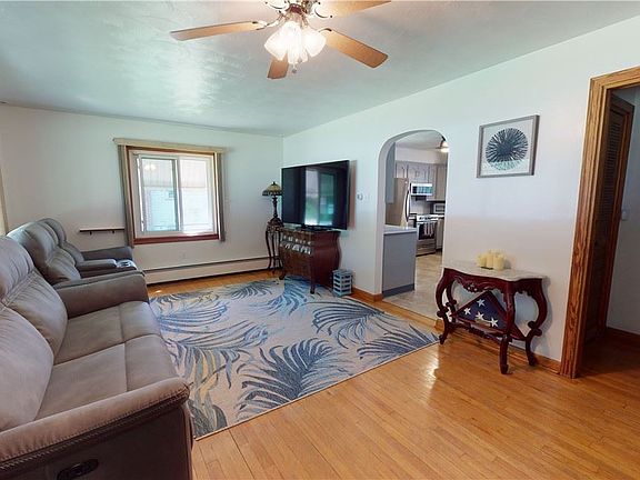 This charming brick rancher has hardwood floors and lots of character! Central air conditioning! The kitchen has been remodeled with new stainless appliances, new lighting and looks really fresh! There is a sun porch located next to the kitchen which overlooks the backyard. The fenced in yard is perfect for pets. Everything is clean and neatly organized including the garage and basement.