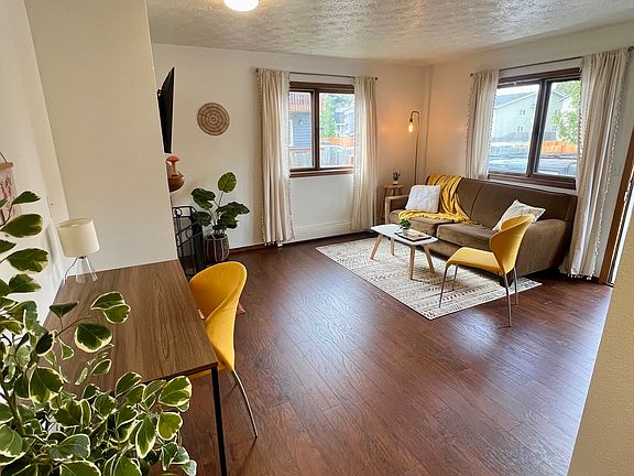 This is a quaint, 2 bedroom, 1 bath apartment in a lower level unit of a 4-plex, which is located in highly sought after South Anchorage. The apartment comes fully furnished and is set up with its own dedicated WiFi, smart TV, In-unit washer & dryer and direct access to a shared back yard that is fenced. The building is centrally located near all of the essentials; Approximately 10 minutes to local hospitals and the airport. 2-5 minutes to the Dimond Center Mall, Target, Costco and a variety of other restaurant/grocery options. It is located in close driving distance to the highways to ease your travels out of town so you can experience all of the adventures Alaska has to offer! Other amenities include: -Open concept living space -Balcony -Linens -Blackout curtains -Wood burning fireplace -Dedicated parking -Outdoor storage -Secure building Pets allowed on approval. Prefer 6 months to 1 year lease. Monthly Rent: $1,975.00 Deposit: $1,975.00 All utilities included. Payment by Venmo is accepted. Please contact Haylie (prefer directly through Zillow). If interested in applying, please apply directly to this ad.