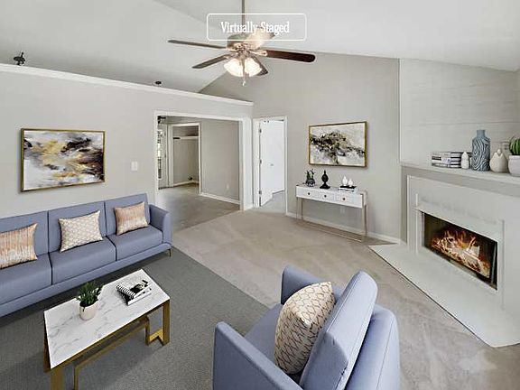 Come see this charming home now on the market! This home has fresh interior paint. Discover a bright and open interior with plenty of natural light and a neutral color palette, complimented by a fireplace. Step into the kitchen, complete with an eye catching stylish backsplash. You won’t want to leave the serene primary suite, the perfect space to relax. Additional bedrooms provide nice living or office space. The primary bathroom features plenty of under sink storage waiting for your home organization needs. The back yard is the perfect spot to kick back with the included sitting area. Don't wait! Make this beautiful home yours today. This home has been virtually staged to illustrate its potential.