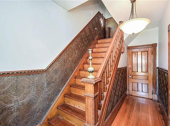 Old World Charm right here in Easton. Enter through the Foyer through the beveled glass doors, stunning original detail, opulent woodwork and wall detail. Living Room offers hardwood floors, wood beams, built in cabinetry. There is an original sitting/parlor room with pocket doors. Formal dining room leads to the large kitchen with granite counter tops, gas stove, and stainless steel appliances. Mud room and half bath on the 1st level as well.On the 2nd level you have 3 bedrooms, full bathroom and the updated laundry room. 3rd level has so much potential, but needs work. There is a large living/sleeping area, partially finished kitchen, and partially finished bathroom. Schedule your showing today!