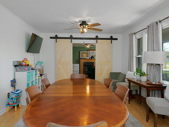 This adorable four bedroom/two-bathroom home has modern updates throughout, offering both comfort and style. Situated on a spacious 6-acre lot, this property provides plenty of room for outdoor activities and privacy. Step inside to discover a welcoming atmosphere w/abundant natural light streaming through the windows. Ideal space for entertaining guests or enjoying family time with the open living room that flows seamlessly with the kitchen featuring sleek countertops and ample cabinets for storage. Master bedroom includes a gas fireplace and ensuite bathroom for added convenience and privacy. Outside is the perfect expansive flat yard that is perfect for cooling off and unwinding on the covered porch. With its desirable location, modern amenities, and spacious lot, with a workshop is a rare find that offers both comfort and tranquility. Don't miss this opportunity to make this your forever home!