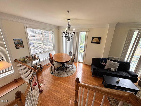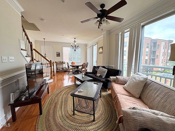 Located in the heart of NC State's Centennial Campus, steps from the iconic James B. Hunt Jr. Library and overlooking the scenic Lake Raleigh, this unique 4-story end-unit condominium lives like a townhome and offers an unbeatable blend of style, space, and location. The first floor features a private garage and a flexible bonus room—ideal for a home office, study, or extra storage. On the second floor, you'll find an open-concept living area with a modern kitchen equipped with stainless steel appliances, a cozy living room, a convenient half bath, and a private deck. Upstairs, the third floor includes two spacious bedrooms connected by a Jack-and-Jill bathroom, along with in-unit laundry for added convenience. The top-level, fourth floor, is a showstopper—featuring a private bedroom (or fantastic bonus/entertainment room) complete with a built-in bar, walk-in closet, full bathroom, and access to a private rooftop patio.