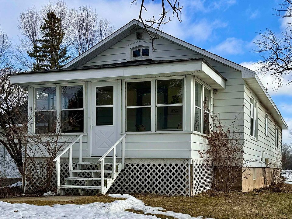 Welcome to this charming 1-bedroom, 1-bath home boasting 1152 sqft of comfort. With mature trees, a serene farm field backdrop, and the option to keep the storage shed with wood and fire ring, this property offers tranquility and charm. Inside, a warm wood fireplace in the spacious living room creates a cozy atmosphere, perfect for relaxing evenings, including the hide-a-bed couch if desired. Enjoy the convenience of a spacious 3-stall garage where storage is abundant for vehicles and outdoor gear. For family-friendly fun, a nearby ball park with a playground awaits, offering recreational opportunities for all ages just a short stroll away. Experience the simplicity and beauty of courtside living - schedule your viewing today!
