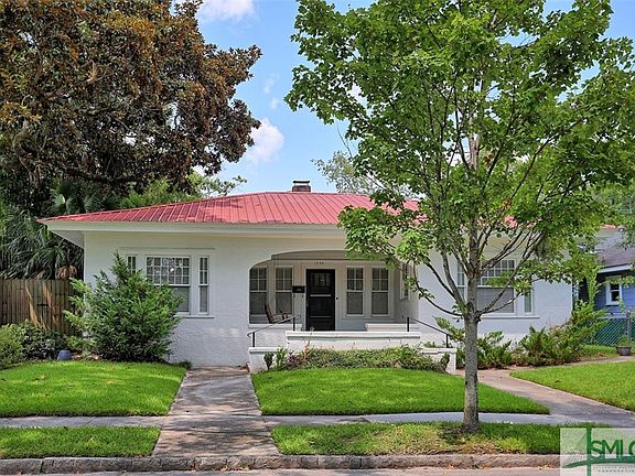 Adorable Parkside bunglow features inviting front porch with swing. 3 bedrooms, 1.5 baths. Family room with masonry fireplace, spacious dining room or 2nd living space. Enormous kitchen with room for an island or breakfast area. Outside is a large deck overlooking the private, fenced backyard. Detached 200+ square foot garage/storage building offers opportunity for separate office/flex space/garage apt. Metal roof, tankless water heater and driveway for offstreet parking. 3 blocks to Daffin Park. No flood insurance required!