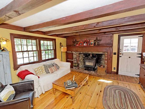 Restored with charm & flair! This 1820 home boasts wide board floors, hand hewn beams, original woodwork & corner cabinet. Large country kitchen w/tin ceiling. Custom baths. Efficient new pellet stove heats most of the house. Patio, stone wall fences & an oversized garage. Want to live in the country & have some privacy? Fenced backyard and fenced area for chickens or small farm animals. All new triple pane windows in 2020.