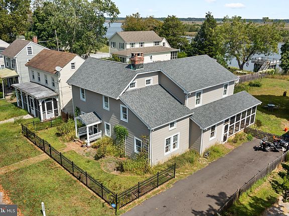 NEWLY PRICED!!! HISTORIC GEM! This beautiful home is loaded with character, history, and uniqueness! With the Maurice River right in your back yard, you could wake up to the beauty and tranquility of the river views every day! These enchanting views can be seen from almost every room in the house! Walk to the back of your yard and notice the existing bulkhead and steps in place leading to the small beach at low tide. Great possibilities to enjoy this water access....Existing submerged floating dock can possibly be reconstructed and attached to the bulkhead. How about using the bulkhead to add and support a beautiful deck for your enjoyment and entertaining? (***Buyers to do own due diligence on approvals and permits.) Now let's stroll back to the home. Enter at the side through a screened porch with a double swing for your outside relaxation. Continue in the door and be captivated by the tongue and groove knotty pine ceilings with exposed beams throughout most of the home. This big open space consists of a spacious family room, kitchen, and breakfast nook, all with attractive specialty hardwood floors and 4 ceiling fans. The family room has 5 large windows to enjoy those beautiful water views. The kitchen screams functionality equipped with custom cabinets, pantry storage, butcher block island, and a unique Heartland "Antique Style" gas stove. Two ways out of the kitchen. Follow to the left into the original 1897 section of the home into the large charming living room which shares a double-sided fireplace with wood stove insert with the dining room, random storage nooks with doors, and one side of a set of steps leading to the upstairs. Continue through a small walkway to the cozy dining room and notice the other side of the fireplace, built-in shelves, and the other side of the steps leading upstairs. Off the dining room is an office/flex room that winds around to a hall with a powder room, mudroom with exit to the back yard, and the second entrance back to the kitchen. There are 2 stairways to the upstairs. One located through the family room and featuring a custom cedar tree railing leading straight up to the second floor. The other stairway can be accessed from the living room or dining room and is a fascinating winding wooden staircase leading up to 3 generously-sized bedrooms, a dressing room with a closet off the primary, a charming extra bonus room, and a huge full bath with 2 stained glass doors and its own brick fireplace. Don't forget the 3rd floor finished attic for extra storage or living space. Back downstairs, there's floor access off the kitchen to the partial basement containing mechanicals. NEWER SEPTIC! Heating and AC are 2-zoned. Approx. 10x20 shed with electric plus 2 more sheds. Sprinkler system AS-IS. Updated electric meters. Historical Society across the street. *Most furniture negotiable. Be intrigued by the animal life with Eagles, Ospreys, sea birds, just to name a few. Come be enchanted by this fascinating home overflowing with charm and character and start enjoying your best life on the river!