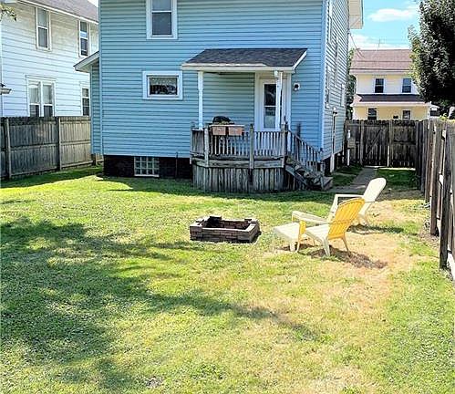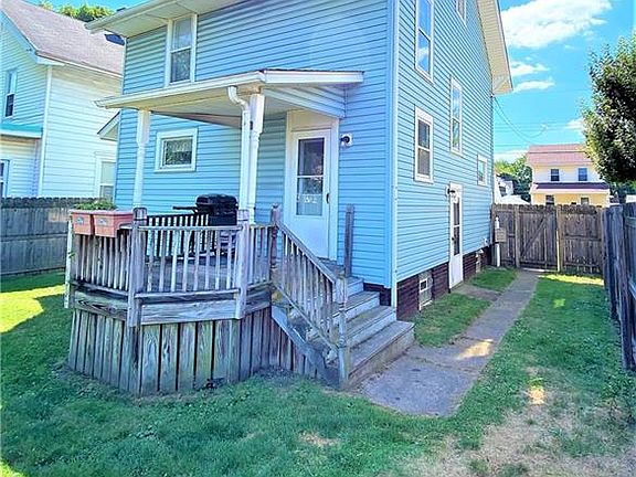CHARMING HOME WITH GARAGE AND FENCED IN YARD - This MUST-SEE home has a large Kitchen with lots of counter space and real-oak cabinets. The Kitchen also includes the following Appliances: glass top stove, refrigerator and a New dishwasher. Dining Room has WOW hard-wood floors, updated lighting and a large bar to seat (4) off of the open Kitchen. The Living Room has great hard-wood floors, well done moldings and a ceiling fan. Staircase has charming wood work and New carpet and padding. There is New carpet and padding in the following:(staircase, hallway and one bedroom). There are (3) nice-size Bedrooms with large closets, the Master Bedroom has a ceiling fan. Home has an updated Full Bathroom with vanity, linen closet, laundry chute, tub/shower, and toilet. Home has glass block windows, New furnace, (100) AMP electric panel and a Shower in the basement. The (1) Car Garage has new exterior lighting, new man door and an updated car garage door with opener - garage has electric. There is a tower HD Antenna that was professionally installed which picks up loads of "HD Channels" No More Cable Bill. There is a nice covered back deck and a large covered front porch. UPDATES: New Dishwasher 7/20, New Man Door Garage 7/20, New Furnace 2019, Hot Water Tank and much more. MUST SEE HOME!