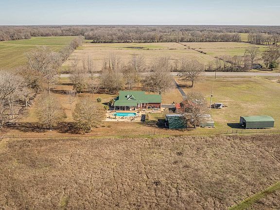 4 Bedroom/3 Bath home situated on 75 acres in Delhi. The home features a large covered front porch, 9' ceilings on the main level with a tall vaulted living room and 8' on the 2nd story. Fireplace in the living room has LP gas logs and the room looks out at the large patio and in-ground pool. The acreage consists of 40 wooded and 35 cleared acres with some fencing. There is a large cypress barn along with a 40x60 Metal Kennel Barn. Outbuildings for all your extras and lawn equipment. There is a 2 car attached garage and a detached 3 stall metal carport for extra cars, boats or recreational vehicles. This home is only minutes from I-20 and offers outdoor recreation for a large range of buyers.