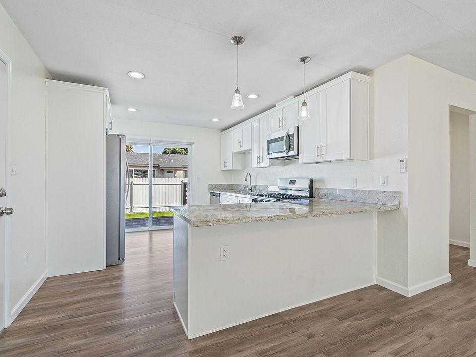 Detached home in Imperial Beach, featuring two spacious bedrooms, attached garage, AC and private yard. Water, Sewer, and Trash pickup are included. This residence has been thoughtfully upgraded from top to bottom. A brand-new roof, windows, and doors enhance the charm, while modern comforts like a new furnace and premium stainless steel appliances elevate the living experience. The kitchen and bath have been exquisitely redone, boasting new cabinetry, stylish tile work, and fully waterproof plank flooring that flows throughout the home. Freshly painted inside and out, the home is also bathed in soft, updated lighting that complements its contemporary design. Step onto the new front and rear decks, perfect for enjoying sunrises and sunsets in this peaceful coastal neighborhood. The large fenced-in backyard and front yard provide ample space for outdoor living, whether it's for entertaining or simply relaxing. In addition to the attached one-car garage, the driveway accommodates two more vehicles, ensuring plenty of parking space. This charming home is ideally located close to the beach, the serene Estuary Natural Reserve, and a variety of restaurants and shops, offering the perfect blend of nature and urban convenience. Owner pays for water, sewer, trash-pickup. Tenants pay Gas and Electricity.