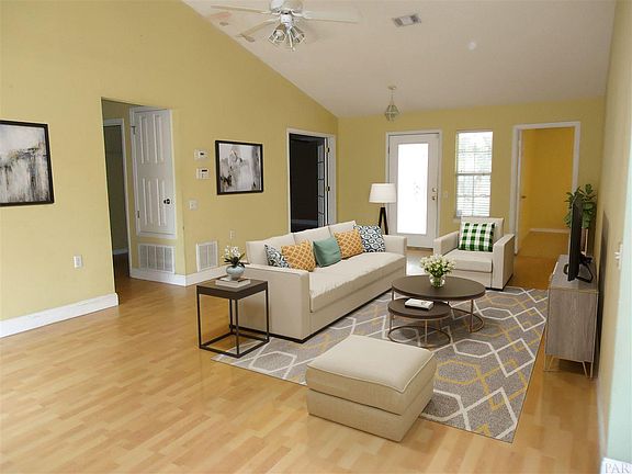Location! Location! Location!This floor plan features a huge living room with a cozy kitchen and breakfast nook. If you love to entertain, you'll love the huge converted garage which is perfect for large gatherings. Laminate flooring in the living room and tile in all the bedrooms, kitchen and bathrooms. No carpet here! The backyard is spacious and includes a shed for storage. Conveniently located close to UWF, Walmart Market, Target, Publix and many restaurants. Don't wait- Schedule your appointment today.