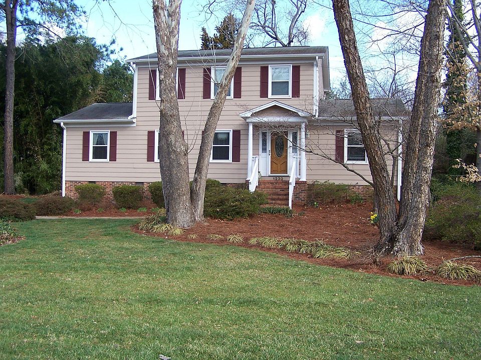 Well landscaped 4Br 2Ba 2-story in NW Greensboro! Updated in the last 5 years -new garage roof, HVAC 2-zone, new replacement windows. Hardwood floors in kitchen and master bedroom. Living and dining rooms, plus a den with fireplace. Master bedroom is on main level. Smooth top range and tile backsplash in kitchen. Large 2-car detached wired garage. Large 2-tier deck great for family cookouts. Great family neighborhood convenient to schools, airport and highways. Neighborhood Description Great NW Greensboro neighborhood near Western Guilford High School is just minutes from Guilford College!