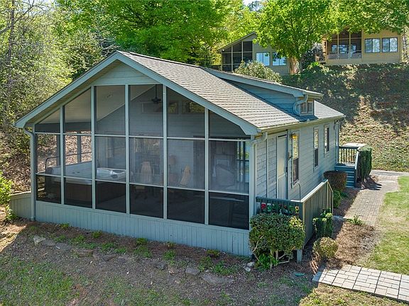 Location, location, location AND UNOBSTRUCTED LONG LAKE VIEWS! This direct lakefront cottage is move-in-ready and being sold with ALL of the furniture AND everything you see inside and outside the cottage (even the flower pots). What is unique and highly desirable about this unit is not just the mega posh finishes and pebble leather new furniture. It is right next to steps to the boardwalk for exceptionally easy access for walking, jogging and lowering your new kayak into the water to paddle! It is an END UNIT with beautiful mature trees for privacy. If you must have privacy, direct waterfront and no updates needed, this is your cottage. It is simply a one of a kind, custom designed and built cottage in the community. It feels cantilevered over water when you are in the kitchen and living room. Serenity now sums up this beauty. With one neighbor, a privacy wall entrance, and roller shades, you can privately enjoy your new Bull Frog hot-tub in complete peace on the screened porch. Watching the sunrise from the front porch makes your morning coffee taste even better. This home has beautiful hardwood flooring, a stack stone gas fireplace, granite countertops, new lighting and even a sleeper sofa in the guest bedroom. There is also a large storage container on the side of the cottage that houses your new kayak and other gear. There is a small paneled workshop with a bench for all of your tinkering and tooling needs. A private grilling area with a Weber gas grill awaits you. There is a fenced paver storage area for your bikes behind the house as well. Feel like taking a dip in the pool at the lodge? Hop on your electric golf cart and enjoy. A Classic Clubcar golf cart with new batteries is included! You do not need to buy anything else. Everything is ready for you to simply show up and enjoy the lake, all the way down to the new silverware. The roof was new in 2022 and all new quiet ceiling fans have been installed. This cottages shows beautifully! Do not miss out on this one! Just bring your lake wear, something to grill, relax and enjoy! If you are looking for a low maintenance retreat and lake getaway, this is it! This established community offers many amenities. They include a fabulous lakefront lodge and swimming pool, marina, beach, fitness room and walking trails. Regime includes landscaping maintenance, private gated community, water, sewer, trash service, pool, clubhouse, walking trails, fitness center, lighting and more. This is a private gated community. Gate is monitored with no public access. Entry requires agent representation. No rentals are allowed with less than a 12 month term. A modified tax structure adds to the savings of this remarkable Lake Keowee cottage. Please ask agents about the land lease, boat slip rentals, and further details.