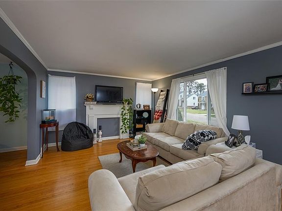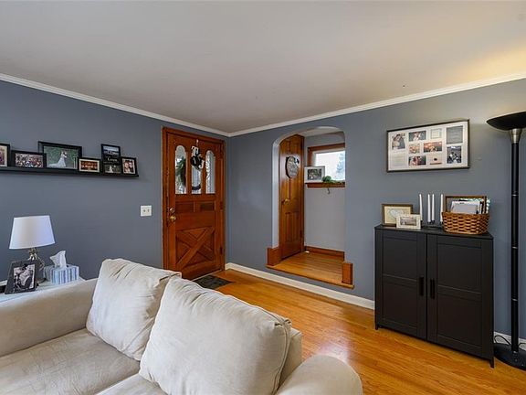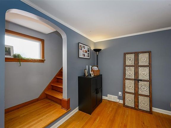Call or Text listing agent Darcy Friel at 330.324.2264 for a private showing. Plain local two-story with beautiful hardwood floors, oversized trim, and curved doorways! Super inviting open floor plan is great for entertaining and leads to the white kitchen with tiled floors, and tiled backsplash. Breezeway off the dining room connects to the heated garage and fully fenced in backyard with fire pit. Upstairs is a spacious bathroom with tiled floors, surround, and wainscoting. There are six panel doors, built-ins, updated fixtures, and a full basement. Darling home with super convenient location!