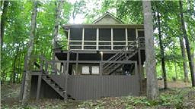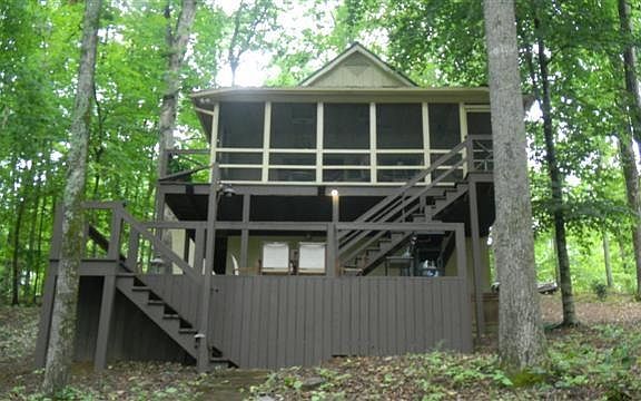 Rustic Cabin located in Leatherwood Subdivision. Has 2 bedrooms 2 baths (upstairs could be used as a 3rd bedroom). . Sit out on the screened porch and enjoy the view. Year around dock. No wake cove. Great neighbors.