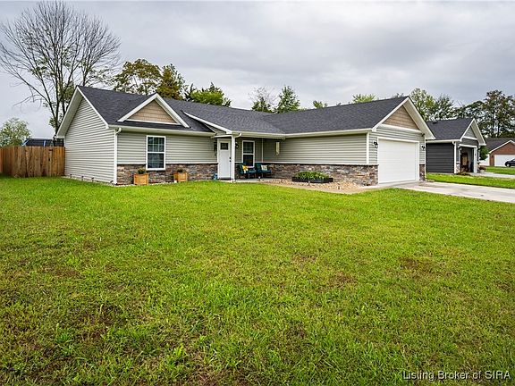 Must see home, situated just minutes from downtown Scottsburg! One owner. Move in ready! Nestled in a quiet neighborhood, this charming three-bedroom, two-bathroom home is a must see. The home features an OPEN floor plan with split bedrooms, a beautiful, spacious eat-in kitchen complete with island, backsplash and stainless-steel appliances, great storage, and master bath with a walk-in shower. Enjoy the spacious backyard already complete with a privacy fence great for relaxing afternoons or entertaining. This home won't last long. Schedule your showing today. Sq ft & rm sz approx.