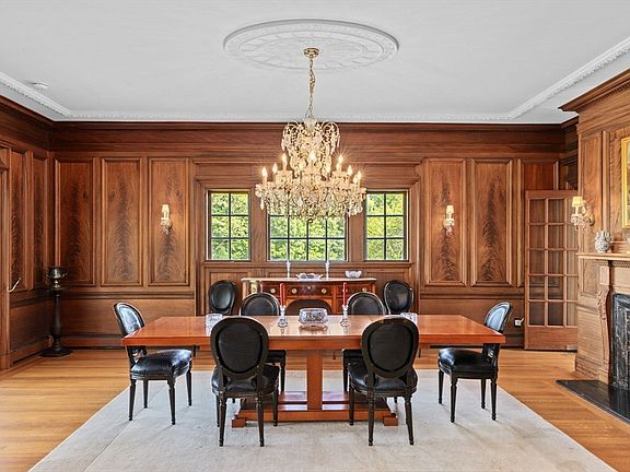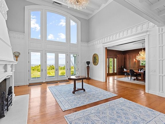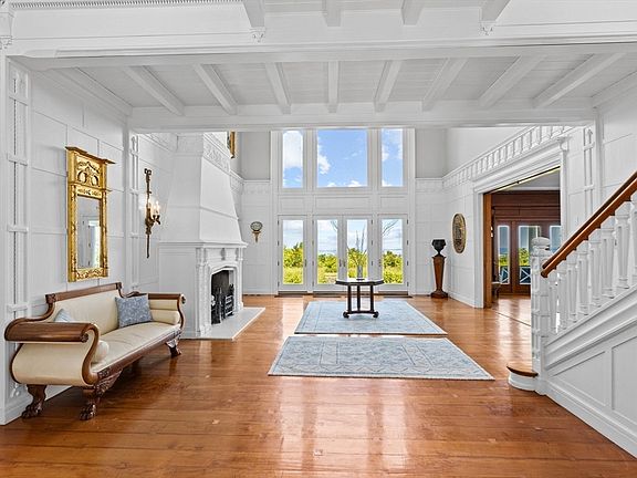 This turn-of-the-century Classic Revival mansion offers breathtaking PANORAMIC views of the S. River and the Atlantic Ocean. Set on 5.42 acres, including a potential BUILDABLE LOT, this property features exquisite craftsmanship & historical significance.Designed by renowned architect Richard Morris Hunt, the home showcases 20-foot ceilings in the Great room with a floor-to-ceiling fireplace & an expansive wall of windows.The dining room features tiger eye maple paneling with marble fireplace, & the office boasts mahogany paneling, ornamental ceiling & custom bookcases.Modern updates by renowned Polhemus Savery DaSilva include a custom center-island kitchen & a main bedroom ensuite.The exterior features an expansive patio together with two 2nd tier decks.The property provides unmatched privacy & panoramic views. Additional features include a four-bay, double-depth garage.This rare & extraordinary property is a miniature Newport mansion, embodying both historical charm and modern luxury.