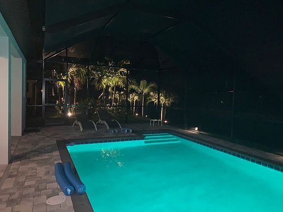 Experience the epitome of Florida living in this stunning 4-bedroom, 3-bathroom single-family home, built in 2021, located at 1230 SW 18th Ave, Cape Coral, FL 33991. Spanning 2,010 sq ft of interior space on a 10,018 sq ft lot, this residence offers a harmonious blend of modern design and comfort. Step outside to a sprawling 1,702 sq ft screened lanai featuring an oversized heated saltwater swimming pool, perfect for entertaining or relaxing. The paver pool deck and driveway add to the home's curb appeal. Situated on a freshwater canal with a seawall, enjoy serene water views and the opportunity for boating and fishing right from your backyard. Located in the desirable southwest section of Cape Coral, this property is close to the Cape Coral Sports Complex, Saddlewood Horse Club, Palmetto Pine Country Club, and the popular Surfside Shopping Center. With its modern features and prime location, this home offers an unparalleled lifestyle opportunity. The property will be available for showings from April 1st to April 10th and again after April 28th. Move-in date is available starting May 24th. This property allows self guided viewing without an appointment. Contact for details.
