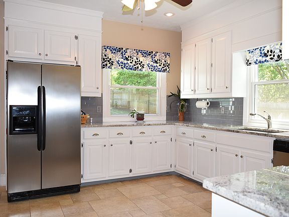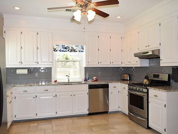 - Kitchen Features: Cabinets White, Pantry, Stone Counters, View to Family Room