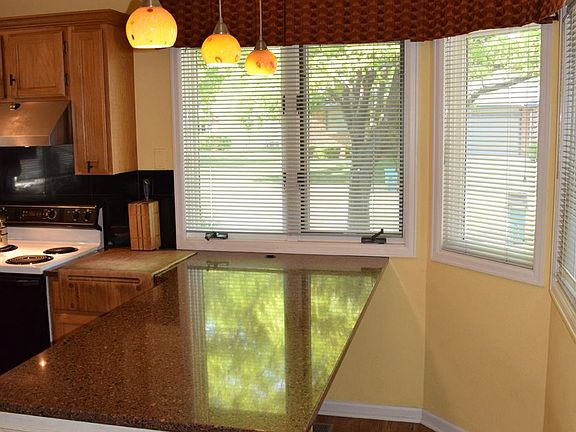This lovely patio home in Oakridge Village has just come on the market. The main floor is 1566 sf: a large vaulted living/dining area, family room, modern kitchen with eating space, two bedrooms, and two full baths. The basement is 1120 sf, 550 sf are finished: a guest bedroom, a full bath, and a large study/den with a wall of built-in bookcases. The hot water heater is new, and there is a sink in the mechanical room. The house is south-facing and has a gas-fired fireplace--two important winter aids. This is a very livable, comfortable home with distinctive features:--The renovated kitchen has a breakfast island, granite countertops, built-in woodchopping block, and an externally-vented range hood.--The laundry area is on the main floor.--The house has two Velux skylights in the living/dining area and another in the master bath.--The master bath has a Kohler walk-in tub, two sinks, and a large walk-in closet. All three baths have grab bars.--The family room has an entire wall of built-in cabinets and bookcases with a space dedicated to a large TV. Access to this room is provided by French doors. The north wall is all windows. --The double-car garage is 440sf and has a workbench.--A spacious Trex deck overlooks a small fenced-in yard with mature plantings. The deck is shaded by a Sun setter retractable awning controlled by remote--The backyard has its own sprinkler system--Radon mitigation has been carried out--A well-governed HOA insures and maintains the exterior of the building and provides trash pick-up, snow removal, and lawn care.