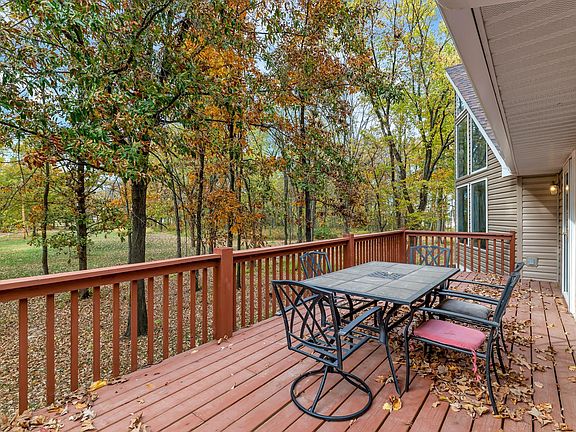 At last! A home with ACREAGE in St. Charles County! 5.48 acres, some wooded, some cleared, and all of it peaceful. Away from the noise, but only minutes from grocery stores. This property provides space for all of your projects under the oversized carport, or in the large garage connected to basement. With natural light pouring through the floor to ceiling windows, relax in the atrium style living room and stare out at the gorgeous fall leaves. Or relax on the wrap around deck as you see the wild deer and turkey leisurely travel through...Seek privacy upstairs in the primary suite with a large tub, separate shower, and large walk in closet. Property features new siding, new roof, new gutters, and new downspouts this year! Your move in ready, beautiful, spacious St. Peters oasis awaits!