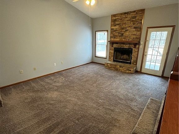Nice 3 Bedroom, 2 Bathroom home in Lake Rim Shores for sale! Spacious Living Room with Fireplace and carpeting throughout main living areas in home. Dining Room with bay window and Eat-in-Kitchen with Refrigerator, Dishwasher, Stove and Disposal. Heat Pump replaced in 2023, Roof and hot water replaced in 2024! Single car garage and Deck out back! Schedule your showing today!