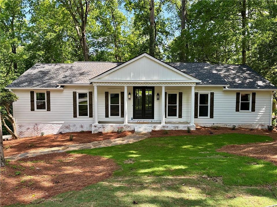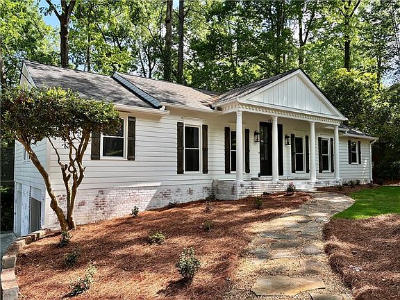 Stunning Renovated Ranch in Sunderland neighborhood on a spacious cul-de-sac lot with many updates and modernizations such as new plumbing, electrical, new HVAC, and water heater. The homes exterior features new roof/gutters, windows, paint, exterior doors and garage doors. The cozy kitchen has custom cabinets, quartz countertops, a marble backsplash and walk-in pantry. Brand new KitchenAid stainless steel appliances and modern touches like a pot filler. Gorgeous hardwood floors throughout the main level. The main and lower level fireplace features new glass doors and wood beam mantels. The separate dining room includes a modern light fixture and classic chair rail, while the formal living area offers incredible versatility – perfect as an office or playroom. The primary bedroom featuring two custom-shelved closets that provide ample storage. A fully finished basement which has been waterproofed, offering additional living space with two extra bedrooms, a full bathroom, spacious great room with fireplace that opens to a covered patio and large laundry room with sink and additional storage. The backyard backs up to Marist School property with a large deck, features a creek that ensures privacy and an opportunity to make it a private oasis. Located with easy access to 285 and 400, this home is conveniently situated near Dunwoody, Brookhaven and Buckhead. Close to top schools including St. Pius X, Marist, and Chamblee Charter as well as 3 major hospitals including CHOA. Sold AS IS, this unique renovated home represents an extraordinary opportunity for those seeking a move-in ready property with countless upgrades and a prime location.