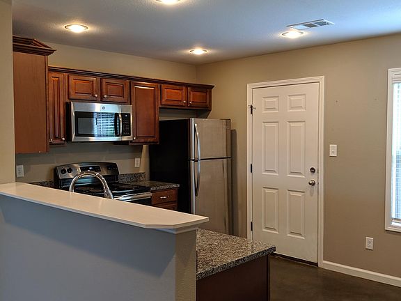 Two bedroom 2 bath home with two care garage. Split master plan with acid stained floors and vaulted living area. Kitchen features upgraded cabinets, along with granite counter top and stainless appliances. Utilities and lawn care are responsibility of tenant.