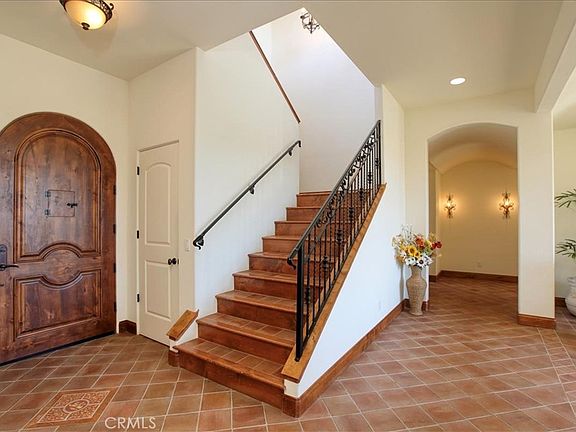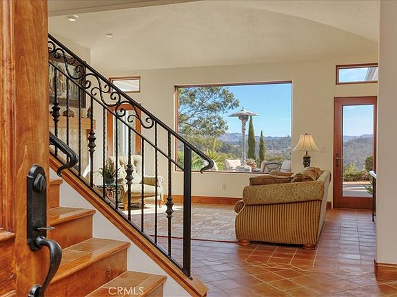 Perched on two peaceful and private acres, this beautiful home is surrounded by mature landscaping that showcases outstanding panoramic views of the coastline and surrounding hills. This Spanish Revival inspired home perfectly blends old world charm and elegance with comfortable contemporary living. Beyond the front foyer you will find the inviting, light filled living room which includes a wood burning fireplace and large window offering picturesque views along with individual French doors allowing access to the outdoor patio. Additionally, there is an open space currently used for a baby grand piano that can also serve as a formal dining room. Steps from the living room is a study/office with its own double door entry and large window. The well-appointed kitchen opens to the inviting dining area and family room and includes granite counter tops with quartz on the spacious island, custom wood cabinetry and a walk-in pantry. The main floor owners’ suite has its own beautiful views and double glass doors leading to the patio. The attached bath features dual sinks with marble counters, separate tub and step in shower along with a spacious walk-in closet. Both guest bedrooms include attached bathrooms. Stepping outside is the impressive patio offering both covered and uncovered areas perfect for gatherings and entertaining. You will enjoy both spectacular sunrises and sunsets thanks to the ideal orientation of the home. The thoughtfully landscaped outdoor yard space offers room for another outbuilding or garden. Across the driveway from the residence is an additional garage/shop with matching architecture featuring double rear glass doors to its own patio with ocean views. This additional building could potentially create many possibilities such as a guest house, shop, or studio. Enjoy this private and picturesque setting all while being conveniently located mere minutes from the Arroyo Grande Village, San Luis Obispo, local beaches and all that the Central Coast has to offer.
