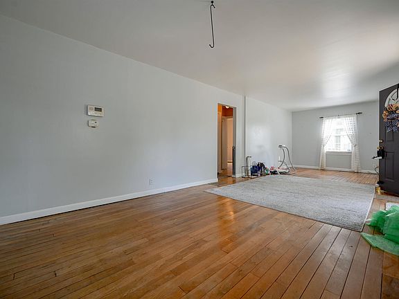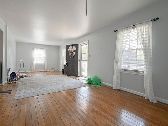 Adorable home with full basement and covered porch. Large living room with wood floors. Applianced kitchen with nice cabinets. Bedroom on main level and entire upper level with half bath and lots of storage. Nice yard with detached garage.