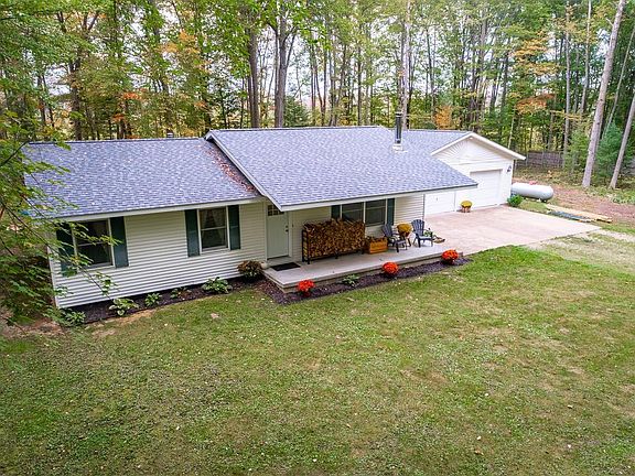 *Offer deadline: Mon. 10/02/23 @ 4pm* Take a look at this wonderful ranch home, nestled back in a private wooded setting that's just so hard to find. You'll enjoy being in nature with the convenience of being close to school and town. This home features over 1300 square feet of living space with very generously sized bedrooms and a 2.5 car attached garage. Meticulously cared for and updated extensively over the past several years. Updates include new kitchen and remodeled bathrooms, BRAND NEW ROOF, light fixtures, new hot water heater, new paint and floor covering including hardwood thoughout much of the living area. Wood stove and all appliances stay. The outdoor space features a newer Amish built shed being used as a chicken coop as well as a 40' x 50' garden area. All of this sitting on a lovely 3.1 acre setting with nothing but peace and quiet to offer, the home sits roughly 280 feet off the road with no neighbors in sight! This one won't last long.... reach out to schedule your own private tour today!