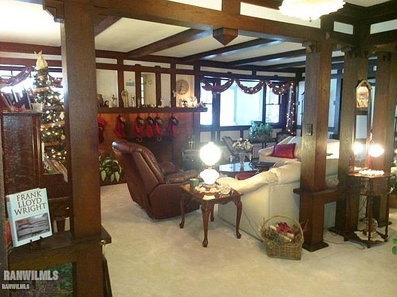 Frank Lloyd Wright inspired this unique home. All natural woodwork and character. Main floor double entry. Living room w fireplace, built in window seats, sitting area. Formal dining room w built in hutch. Kitchen w corian counters, pantry, eat in table. Bdr w hdwd flrs. Full bth w tile flrs and jetted tub. Den/Office/Bdr w french doors leading to sun rm. Upstairs has 3 lg bdrs, full bath & storage rm. Basement has rec room w pool table that stays, sink & storage closet w area for blt in bar fridge. Family rm w fireplace. Storage rooms. Large laundry rm w counter space. Full bth. Between house & garage is large Sun Room (528 sqft), heated tile floors, built in hot tub, fireplace & skylights. 1 bdr and 1 bth are upstairs above gar, designed as in-law apartment, not connected to the upstairs of main house. In Law apt is 792 sqft, vaulted LR w skylight, Bdr w 2 closets & skylight, full bth and kitchenette. 3 car attached garage is insulated & has heated floors. LL sqft is approx (total LL is 1798).