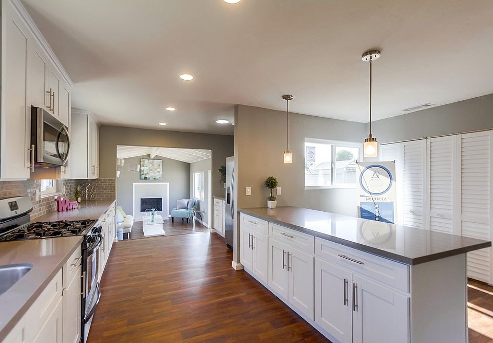 Fully remodeled 4 bedroom, 3 bath beauty tucked away in North West El Cajon with Mountain views! Features an open layout with 2 living rooms, quartz kitchen counter tops, and modern upgrades throughout. Expansive front and backyard with room for your dreams! Enjoy ultimate privacy in the Master Bedroom upstairs, while the 3 guest rooms are on the first level. Must see today as this one won't last!