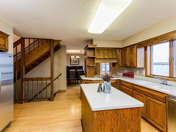 Spectacular lakefront setting on Orchard Lake with sweeping south exposure views from most rooms in home! Impress your guests from within or out on the 32 ft deck or on the 32 ft patio. Large 1st floor family room features breathtaking lake views & 14 ft ceilings! Master suite boasts a wall of windows. Huge walk in closet and luxury master bath. New SS appliances, corian counters, maple floors in kitchen. New carpet, shake roof, newer steel siding, , walk out lower level! Best lakeshore price!, Directions County Road 5 (Kenwood Trail) to Klamath Trail, WEST to 168th Street West, WEST to Home.