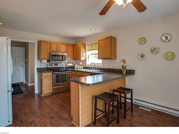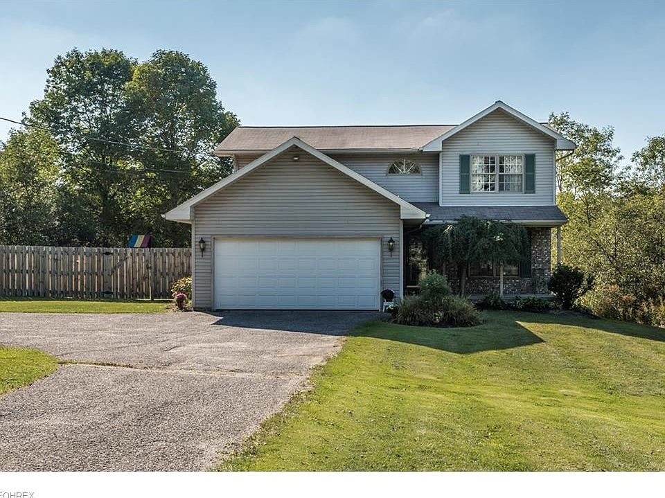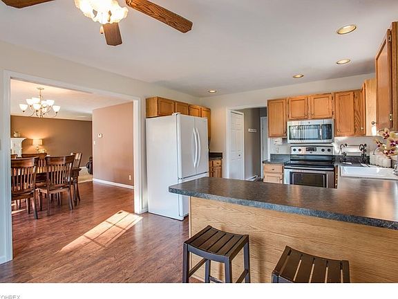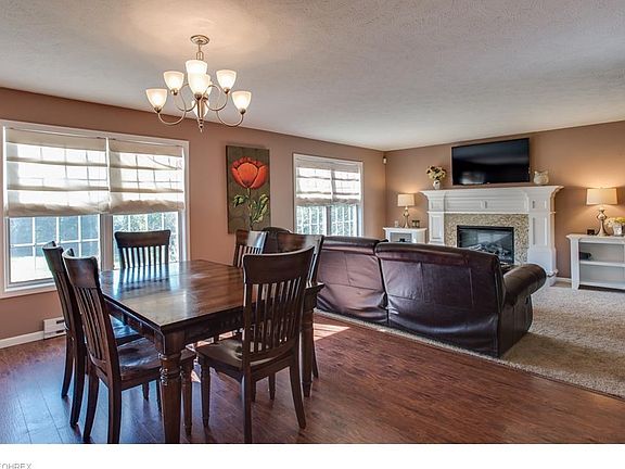 Gorgeous Colonial on a Large Lot! Inviting front walkway and porch. Welcoming foyer with ceramic tile and a coat closet. Open floor plan and lots of windows let in plenty of natural light. Eat-in kitchen with breakfast bar and room for a table. Additional dining room area opens to the living room which boasts an electric fireplace and a gorgeous white mantle. Kitchen features sliding glass doors that open to the deck which is a great space for entertaining. Convenient first floor half bath. Large master suite with full bath. Two other good sized bedrooms and a full bath. Full unfinished walkout basement is a great space for a hobby area or storage or could be finished for additional living space. Many possibilities! Large fenced in backyard. A serene setting with the Chagrin River running along the side and back of the property. 1.62 acres! Two car attached garage. Shed provides additional storage. Built in 1995! All appliances stay. Great location near Mayfield Road, Kawalec Recreational Fields and Bass Lake. Private oasis!