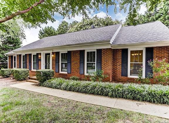 Great ranch home near Blakeney, StoneCrest & Ballantyne! The art deco front door leads you into a formal living & dining room, and library. Historic barn doors create a cozy library off the kitchen and dining room. Master suite with a private bath & small walk-in closet, two additional bedrooms & a full bath. The open kitchen has an island, granite counters, stainless steel appl & white cabinets. The backyard is large & flat, perfect for summer cookouts & entertaining! Great schools all within 2 miles from home (school assignment subject to change).