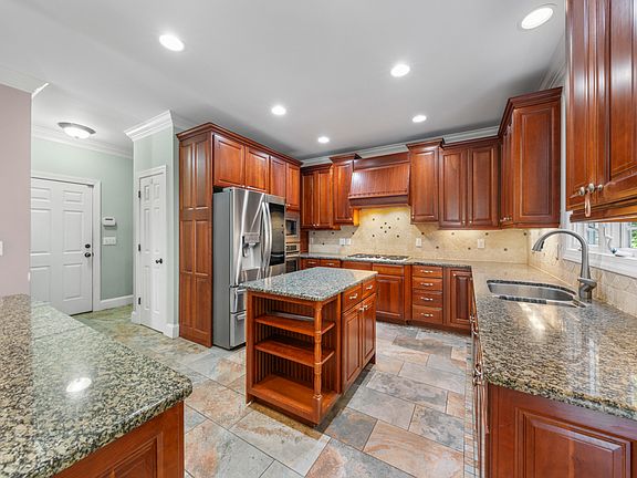 The chef's kitchen features granite countertops, a large center island, and premium cabinetry, flowing seamlessly into the spacious living areas with multiple fireplaces and elegant detailing. A private-access guest suite offers exceptional flexibility for visitors, in-laws, or a dedicated home office.