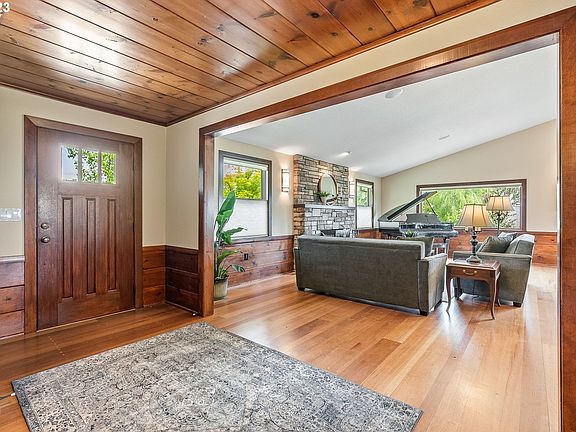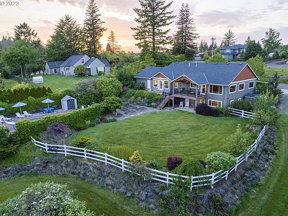 Almost an acre with views of Mt. Hood and the Clackamas river basin located in the heart of Happy Valley- Vacation at home in this exquisitely renovated 3 bedroom/ 3.5 bath craftsman-style home. Living Room/Great room, complete with vaulted ceilings, stone fireplace and abundant large windows to capture all the gorgeous views. This home is equipped with a chefs kitchen, huge dining area that opens to large dining/entertaining covered decks to enjoy year-round. Daylight basement includes separate entrance, huge family room (could possibly be 4th bedroom), full bath and large storage area. The thoughtfully designed floor plan offers a seamless flow, creating a harmonious blend of comfort and functionality. An inground pool awaits, inviting you to relax and bask in the sun-drenched oasis that surrounds you. As you enjoy a refreshing swim, marvel at the breathtaking views of the majestic mountains that serve as a lovely backdrop. With its meticulous renovation, spacious layout, and idyllic setting, this Craftsman-style home embodies the perfect fusion of modern luxury and timeless charm. Shop possibility buyer to do due diligence (permits have expired- plans had been submitted to Clackamas county and approved) on the lower area of the lot.