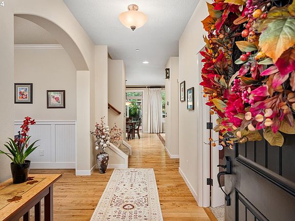 Discover this 2010 Tryon Highlands home, a peaceful retreat next to Tryon Creek State Natural Area which offers 658 acres of second-growth forest and 14 miles of hiking, biking, and horse trails. Majestic Douglas firs, maples, pines, cedar trees and natural south light are visible through the wall of windows along the back of the home. The original owners have meticulously maintained and upgraded the residence and the pride of ownership shines. Improvements include wood floors, custom built-ins that highlight the great room & surround the gas fireplace, fresh interior paint, wainscoting, AC, window coverings, self close kitchen cabinets, California Closet organizers, SMART features & professional landscaping including a flat lawn area. The gourmet kitchen has high end stainless appliances, gas cooktop, a large island & a pantry. Additional rooms include a main floor den, dining room with Butler's pantry, and an upper level bonus room for workout or media. The primary suite includes a well appointed walk-in closet & soaking tub for forest bathing without leaving the house.A spacious composite deck has gas hook-up for a BBQ and a fire pit surrounded by built-in bench seating for gatherings. The great, kitchen, & dining rooms flow into each other to create the highly desirable circular floor plan. 3 car garage with storage cabinets, coated floor & Universal EV car charger- it even has wainscoting! Your neighbors will be deer, owls, hawks, woodpeckers, fox & a wide variety of birds. The nearby Nature Center has interpretive exhibits and hosts an annual Trillium Festival each Spring. The spectacular setting is just minutes from Lewis & Clark College, Northwestern School of Law, Lake Oswego, Mt Park stores with New Seasons & Starbucks, OHSU & downtown Portland. This is a home that appeals to those with a deep appreciation for the beauty of nature. Privacy & calm prevail in synch with the seasons and a state park adjacent to the backyard. [Home Energy Score = 3. HES Report at https://rpt.greenbuildingregistry.com/hes/OR10233815]