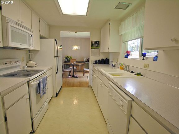 Popular "Kent" floor plan with 2 full bathrooms on level lot just steps from all new Crown Aquatic Center with year round pool, lap pool & spa. Original oak hardwood floors thruout. Inside utility closet. Large covered patio (easily enclosed for added living area). Large attached dbl garage. Newer roof & exterior paint. Vinyl windows, central air conditioning. Masonry fireplace with gas insert. Active, 55+ living at it's affordable best