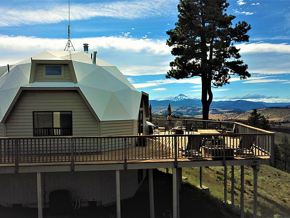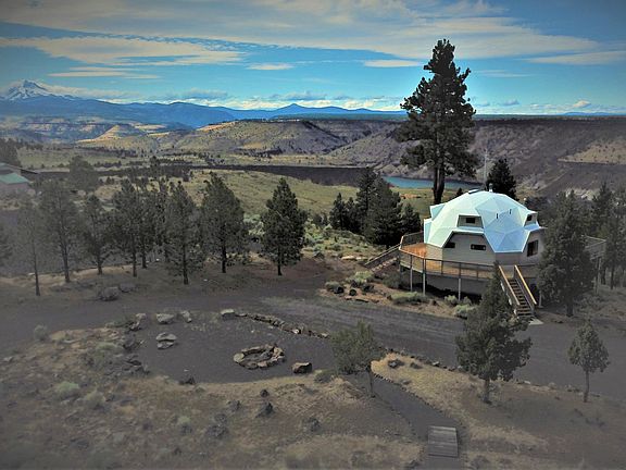 Rare & expansive Lake & Cascade Mtn. views off the over-sized deck of this one-of-a-kind custom built Geodesic Dome. A unique tranquil get-away from the hustle & bustle in this 3 level custom home. 5 acre, 3 bedroom, 2 full bath, kitchen, dining area, L/R, Loft, Basement w/walk-out slider to patio, bunk beds, and utility + storage & move-in ready. Zero-scaping low maintenance yard. Heliport. Excellent off-grid solar system + 30 kw generator to back-up solar and run A/C. 24X36 custom pole barn for garage OR toy storage. This is a great opportunity to own in 3R w/Lake views. Fully furnished and move-in ready. See Amenities Sheet.