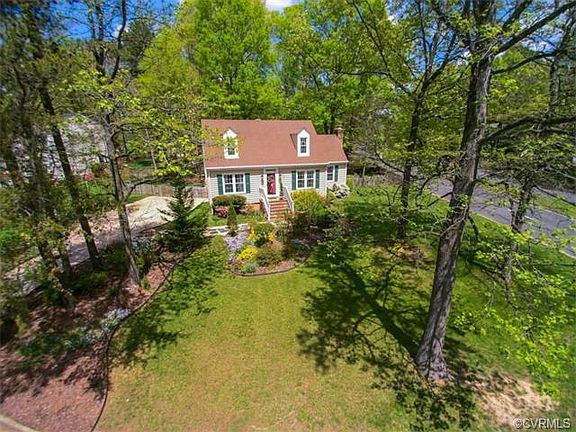 Charming 1,700 square foot Cape centrally located in the far West End. Wood floors on both levels, formal living and dining rooms, nice eat-in kitchen with updated appliances and countertops, family room with moldings and fireplace, and large first floor laundry room with rear exit on main level. Second level offers owner's suite with great tile shower, two additional bedrooms and an updated full bathroom. Tastefully landscaped with fenced rear yard and detached storage shed. Exterior has vinyl siding & replacement windows. Property sits on a .4 acre lot with large driveway. Great location and convenient to everything Short Pump has to offer.