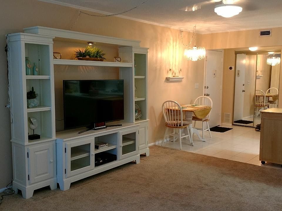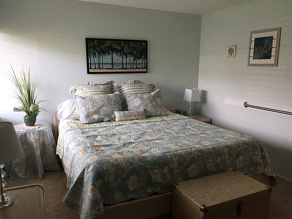 Want to see what it's like to live in Florida? Look no further! This beautifully furnished 1/1 condo is located minutes to our beautiful beaches. It's in a 55+ Active Adult community with a coastal theme and is a ground floor unit. Available now for a 6-12 month lease. It overlooks the pool area and conveniently located within walking distance to stores and a few restaurants. Newly remodeled kitchen and bathroom (equipped with safety rails). Master bedroom is well appointed with double closets and a king size bed. This community has a newly remodeled clubhouse and pool and has tennis and shuffle board courts! Next door to a public golf course too! Sorry, no pets are allowed per community rules. 55+ Active Adult Community. Sorry - No pets allowed. Fully furnished condo with water, cable, internet and free laundry are included Tenant responsible for electric bill which averages $75 a month. No smoking allowed. Application fee includes background and credit check through condo association.