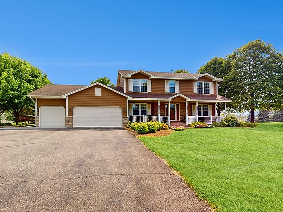 Great opportunity to own 5 acres in St. Michael area. Very convenient to schools and shopping. Owner has meticulously cared for property. Beautifully landscaped. Endless amenities and updates throughout. Kitchen features quartz countertops, refinished cabinetry, updated appliances. Main floor family/porch with vaulted wood ceiling, in-floor heat and mini-split for air conditioning. Built-in cabinets in dining and office. Attached garage is heated and features epoxy floor. Additional detached garage/shop. 36' x 28' cold storage and 28' x 28' heated and cooled shop area. Shop area has 16' x 10' overhead door and epoxy floor. As you walk the property you will notice all the beauty this property has to offer. Stone pillars at end of driveway invite you to the park like setting with endless trees and landscaping. Rear paver patio to enjoy the evenings overlooking the pond with fountain. Additional gravel area behind detached garage for storage or parking.