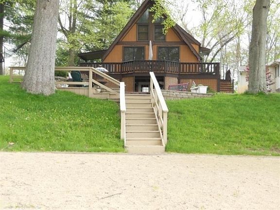 HUGE PRICE REDUCTION! Beautiful lake views on three levels. Four bedrooms, two full and one half bath provide room for all your family and guests on ALL SPORTS BAIR LAKE. Easy two hour commute to Chicago. One mile to Swiss Valley ski lodge. This lovely home has had loads of improvements in recent years including newer furnace and central air, new windows, and electrical updates. The main floor has wall of windows overlooking lake,open floor plan, nice kitchen, updated full bath, master bedroom with walk-in closet and an additional good sized bedroom. Very large deck overlooking the lake is located off the living room. The loft contains another large bedroom and full bath. Walk out level holds great family room, huge dormitory style bedroom, convenient half bath, lots of storage and french doors leading to brick patio. Furnishings and appliances are included in price as well as dock, paddle boat, tractor and lawn equipment. Some personal items reserved.