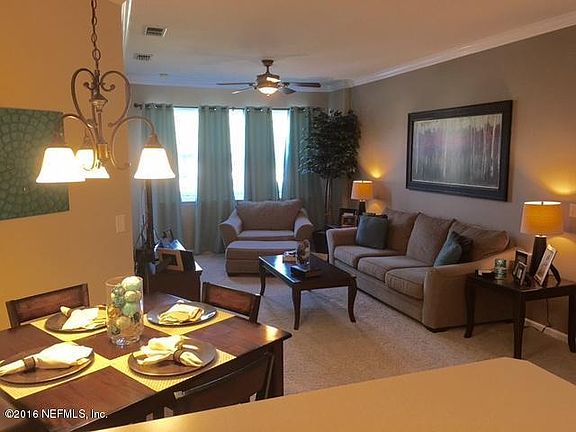 This 3 bedroom 2 bath condo is located in the gated community of Hammock Grove at Kernan Forest. This single story end unit with a garage features a beautiful landscaped water view and includes numerous upgrades such as crown molding, refinished the cabinetry, new dishwasher, new microwave, new higher quality carpet, and fresh paint. Enjoy the view from the screened in patio. Plenty of storage with oversized walk in closet in the master. The extensive amenities center includes a waterpark, pool, basketball court, and playground. No pets, 2 year lease preferred and rent discount to $1200 per month. Tenant to maintain qtrly pest control. This property will be owner managed.