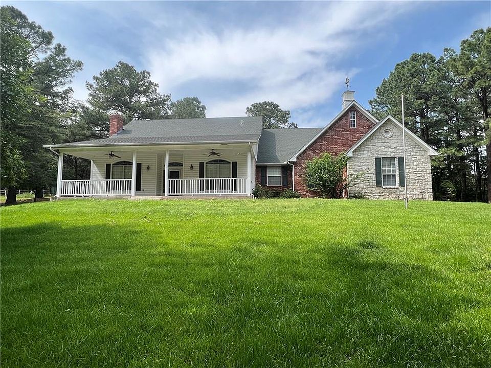 You don't want to miss this beautiful home tucked perfectly behind just the right amount of trees. A well cared for three bedroom, two bathroom home featuring a bonus sunroom off the kitchen, gas log fireplace, three car garage PLUS a two car detached garage, storm shelter, storage shed, greenhouse, sprinkling system, a huge front porch, covered back patio, 2.14 acres and so much more! Schedule your showing today.