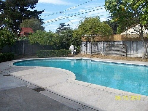 Rare 1950's house on quiet shaded street.New carpet going in this week! No Pets. This home is a one story 3 bedroom, 2 bath, 2 car garage with opener. The kitchen comes with custom tile floors custom oak cabinets, newer granite counter tops, dishwasher, and a sunny bay window for abundant light. Living room includes wood fireplace and a stunning view of pool (pool service included) in a large backyard. Over 1400 sq ft one story home, comes with fresh paint, scraped ceiling, sprinkler system, upgraded bathrooms with newer vanity and tile, newer double pained windows and new central air/heating system. Home will be ready to show after 1-22-15. If tenant pays rent on or before the 1st each month, rent will be reduced to $2450.00 per month. Rent is based on paying rent on the first, if late rent is 2500.00