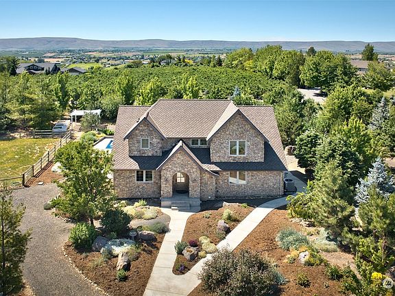 This opportunity features a stunning main house, a beautiful barn converted to finished event space + potential living/guest space, & room for animals or hobbies across 4.35 acres. The main house welcomes with stone exterior & thoughtful landscaping, wood floors, & high-end finishes. Upstairs, you'll find 4 bed/2 bath. Step out back to find a saltwater pool & large patio. The true gem of this property lies in the converted barn. The lower level of this multi-functional space features a commercial sink/prep area, an industrial freezer, a 1/2 bath, a tasting room & add'l storage rms. The upper level of the barn is 1570 sq ft w/views & a great room, kitchen, 2 rms, & bathroom/laundry. Irrigated & fenced.